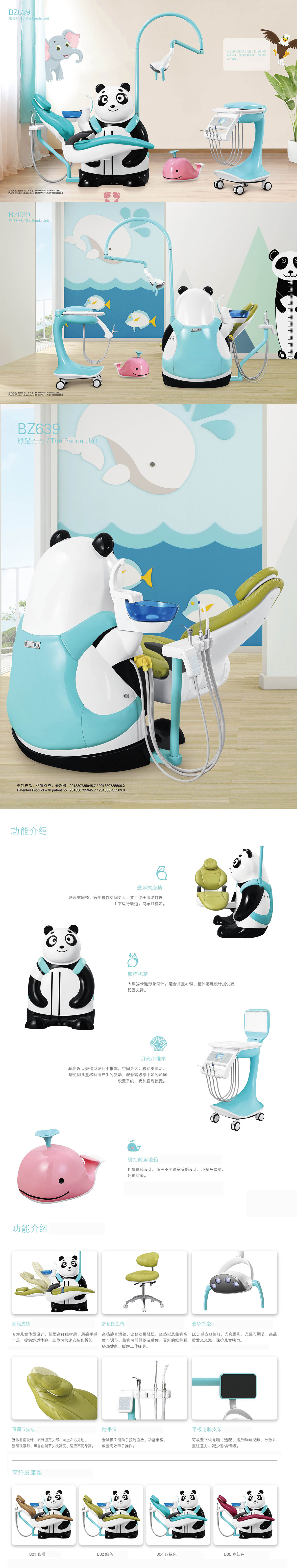 BZ639是枫丹专业设计团队倾力打造的一款拒绝纯粹的功能主义,坚持可爱动感,优雅时尚设计风格的儿童牙科椅。其独特可爱的动物造型设计,让儿童在治疗中减少治疗带来的恐惧和吵闹,使医生可以更加专心地工作,带来更好的治疗效果。